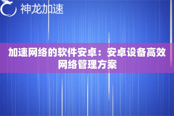 安卓用户必看!如何用加速网络软件提升网络效率
