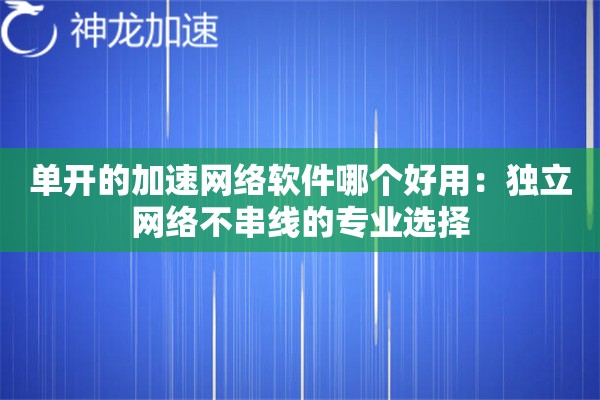最近很多小伙伴在问单开的加速网络软件哪个好用,特别是需要保持独立网络不串线的情况。比如说做网络调研的时候,如果网络地址总是变来变去或者和别人共用,轻则数据采集失败,重则被目标网站直接拉黑。这时候就需要一个能提供独享线路、稳定连接的工具。