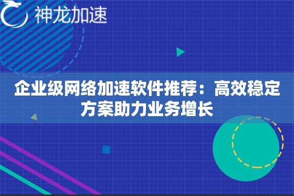 企业级加速网络软件如何提升业务效率