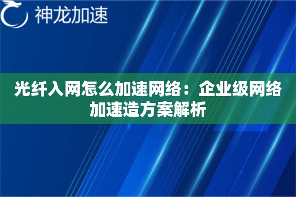 光纤入网环境下企业加速网络加速造的核心价值
