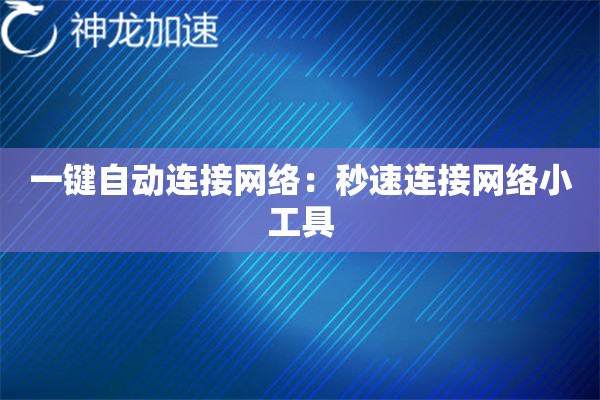 手把手教你用一键连接网络工具解决网络难题