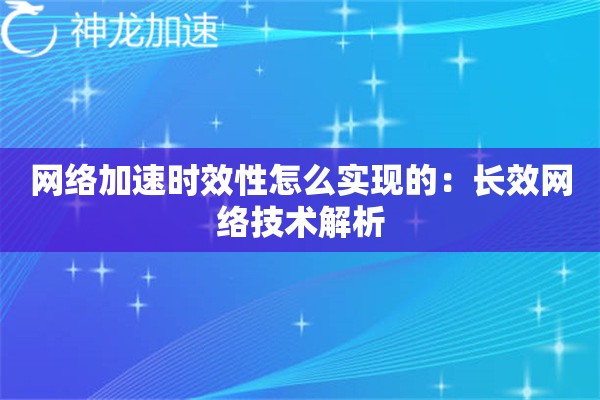 网络加速时效性的秘密:长效网络究竟靠什么维持?