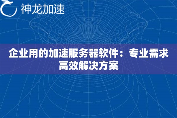 企业级加速服务器软件需求场景分析