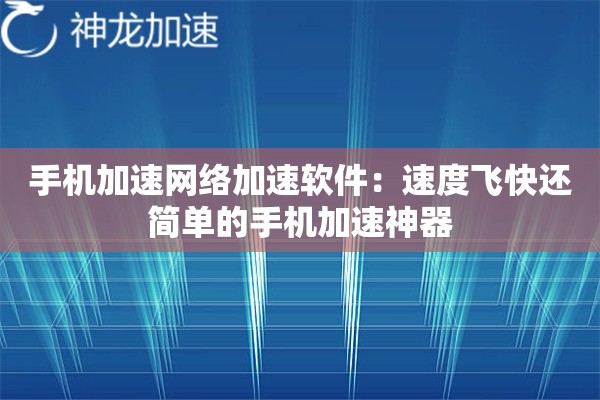 最近总有朋友问我:手机刷视频转圈圈、玩游戏总掉线、抢票永远卡在加载页面怎么办?其实这些网络问题可能跟你的网络地址有关。今天给大家推荐个亲测有效的解决方案——神龙加速APP,这个工具用最简单的方法就能加速善网络体验。