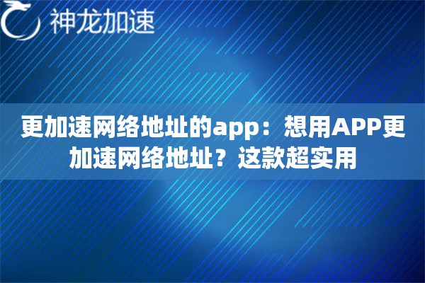 手把手教你用APP加速网络地址