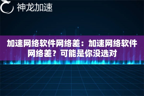 加速网络软件网络差?可能是你没搞懂这几个关键点