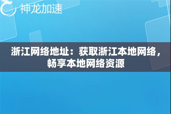 为什么你需要浙江本地网络?这些场景用得上