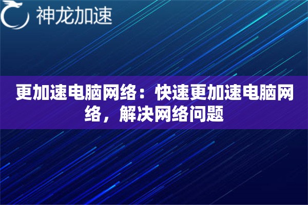 电脑网络说加速就加速?手把手教你应对网络卡顿