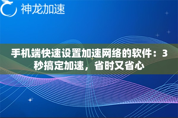 手机端加速网络设置有多简单?3秒操作教程来了