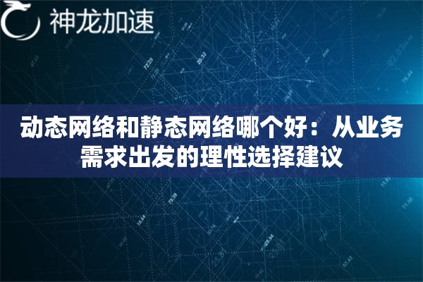 总结来说,选网络不是买商品,而是配工具。先理清业务需求,再对照动态/静态网络的特性,必要时组合使用,才能实现性价比最大化。实在拿不准的,建议先用动态网络试水,业务稳定后再升级静态网络,避免前期过度投入。