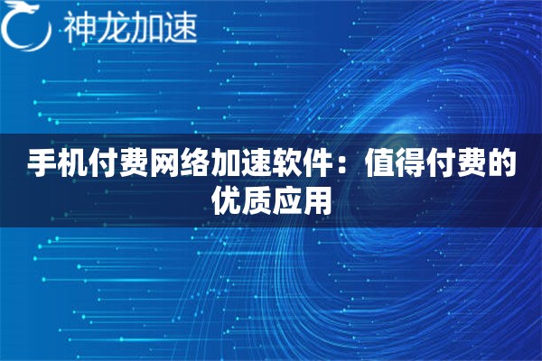 手机付费网络加速软件:为什么值得花钱买专业服务?