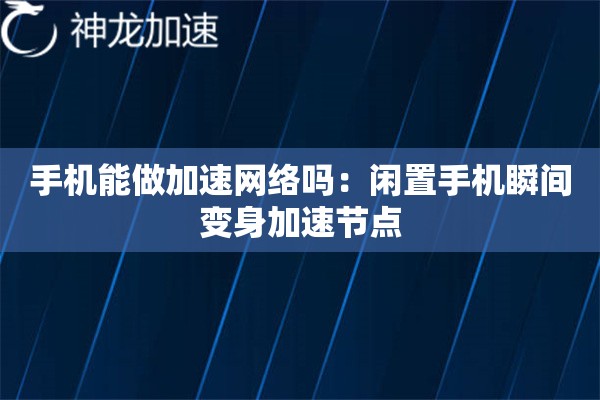 闲置手机变加速节点?这波操作真的不亏