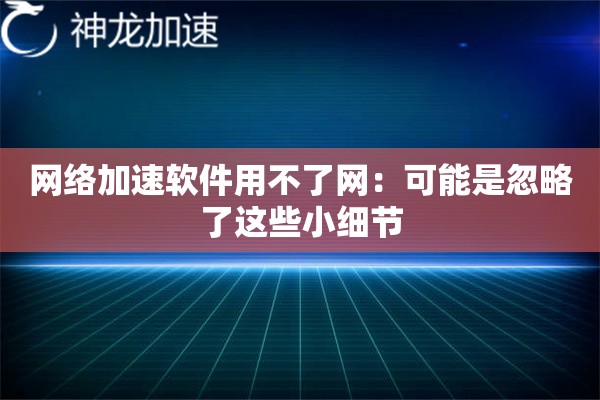 网络加速软件用不了网?可能是忽略了这些小细节