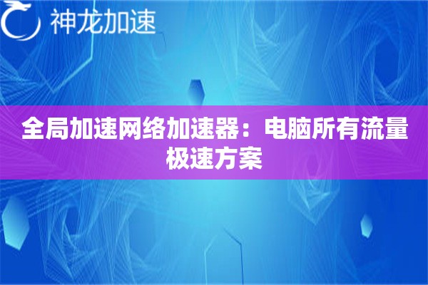 电脑所有流量方案:全局加速网络加速器到底怎么用?