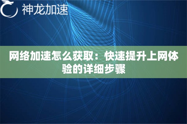 网络加速怎么获取:快速提升上网体验的详细步骤