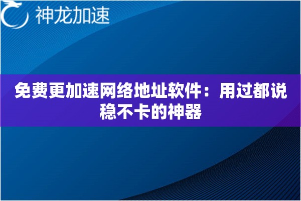 免费更加速网络地址软件:用过都说稳不卡的神器