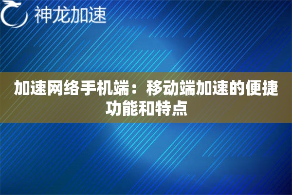 手机端加速服务的实用场景解析