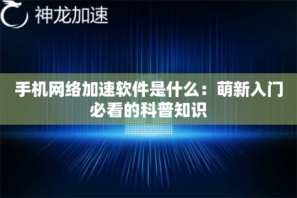 手机网络加速软件到底是啥玩意儿?